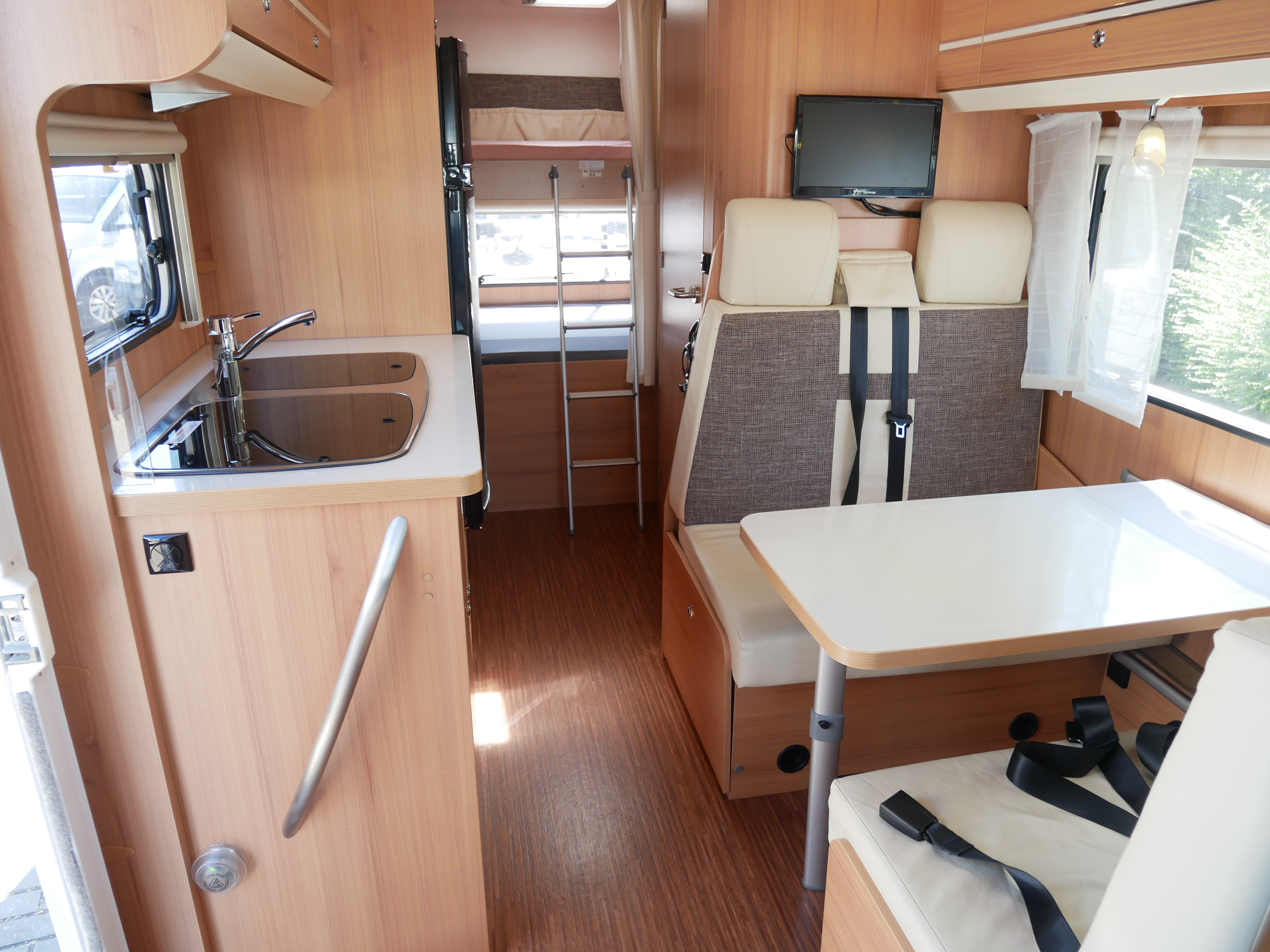 De T.E.C. Freetec A663G biedt 6 slaapplaatsen (alkoof, dinette, stapelbed),